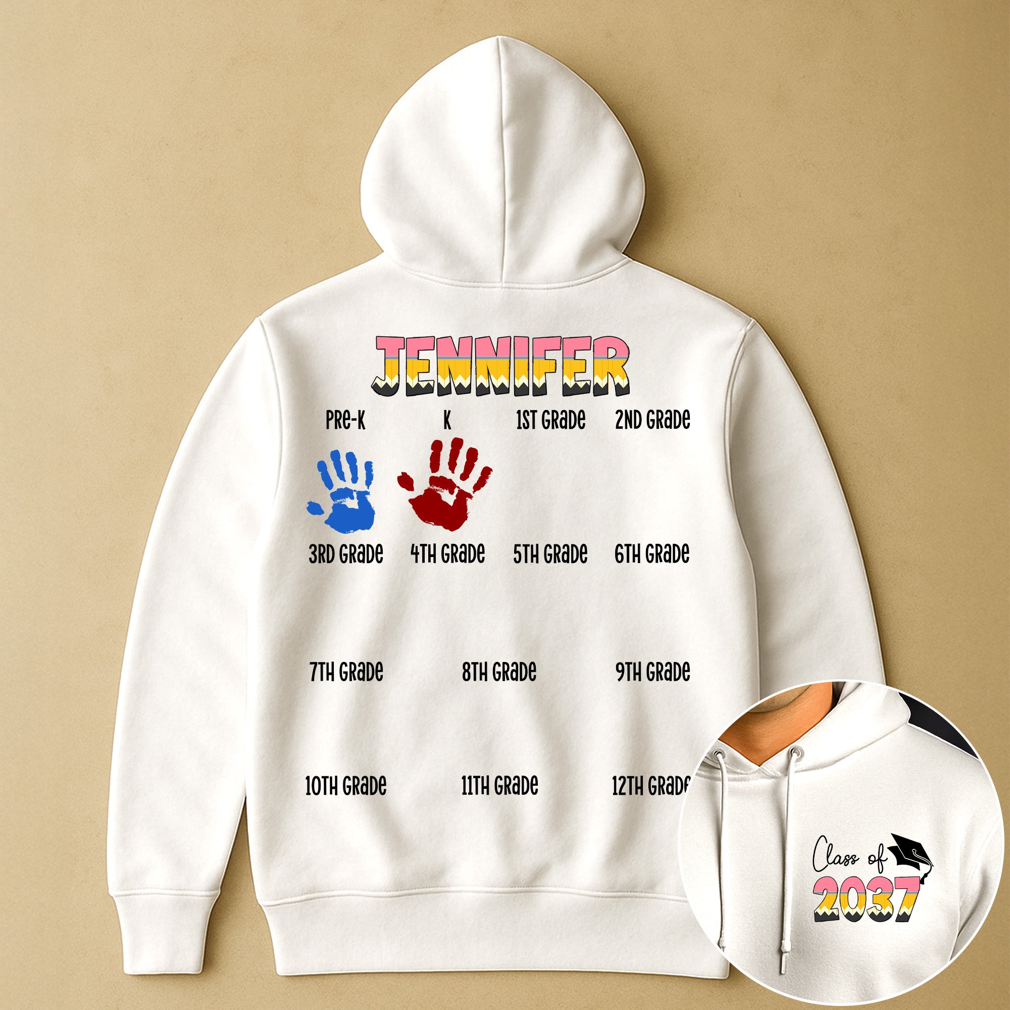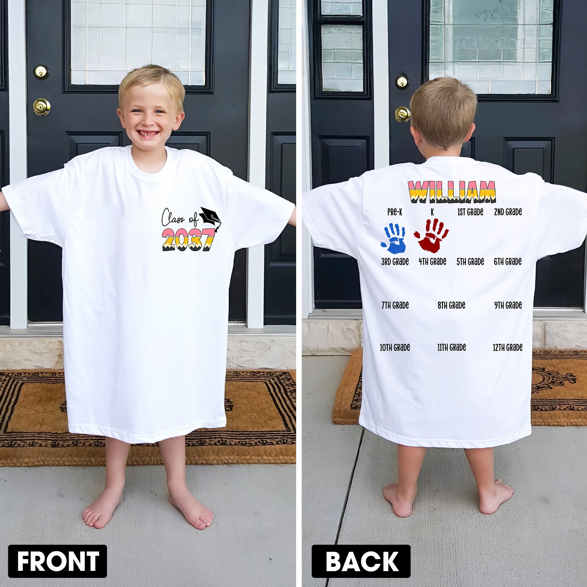 Back To School Grow With Me Grad Handprint For Preschool To 12th – Personalized Shirt