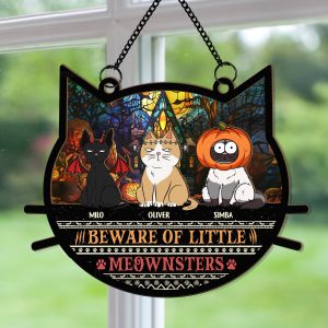 Whether you’re decorating for a Halloween party or just want to add a touch of festive flair to your home, this suncatcher makes an ideal window decoration. It’s also a fantastic gift for family and friends who appreciate a good laugh and love their furry companions. Imagine the light streaming through your customized ornament, casting colorful shadows and bringing a smile to everyone’s face.