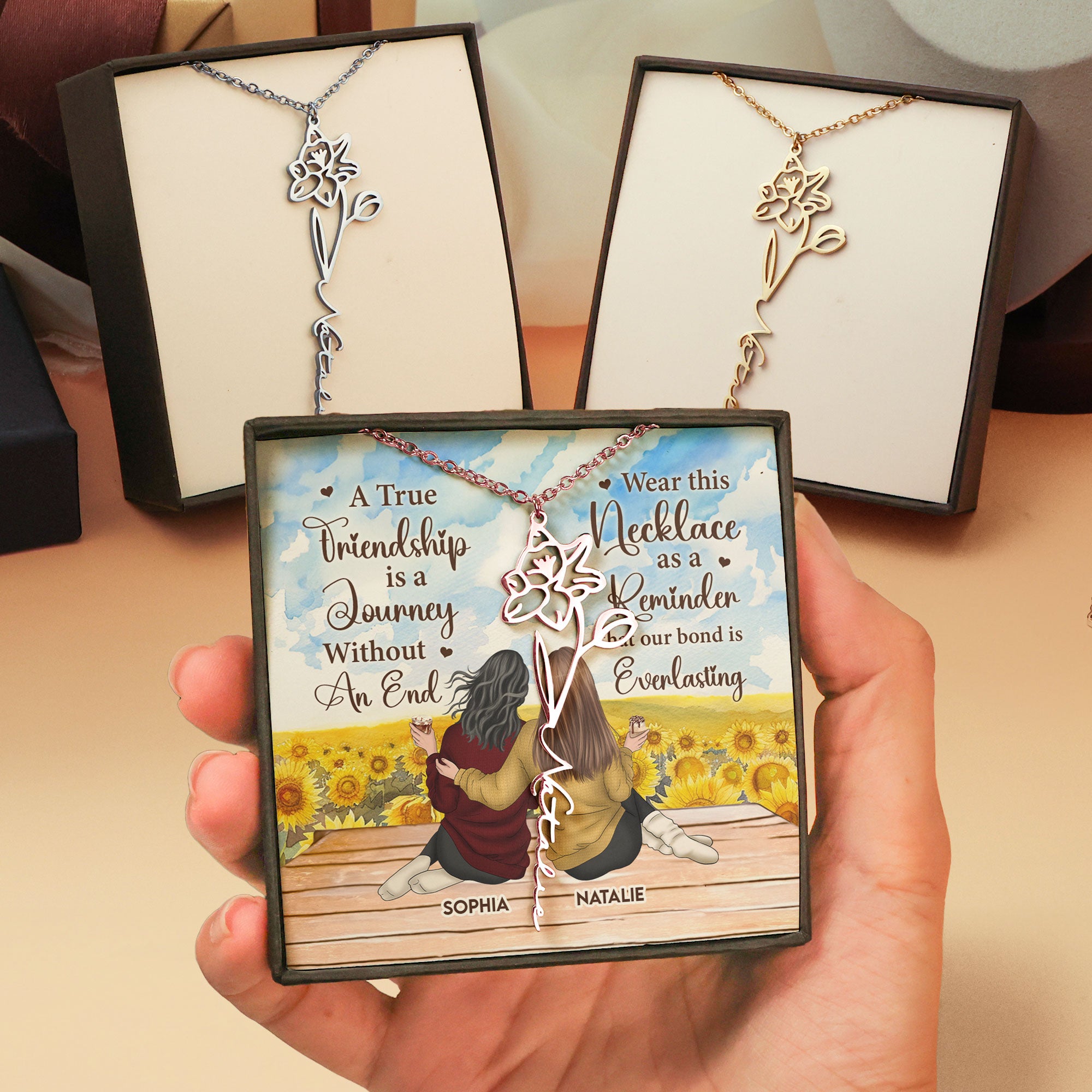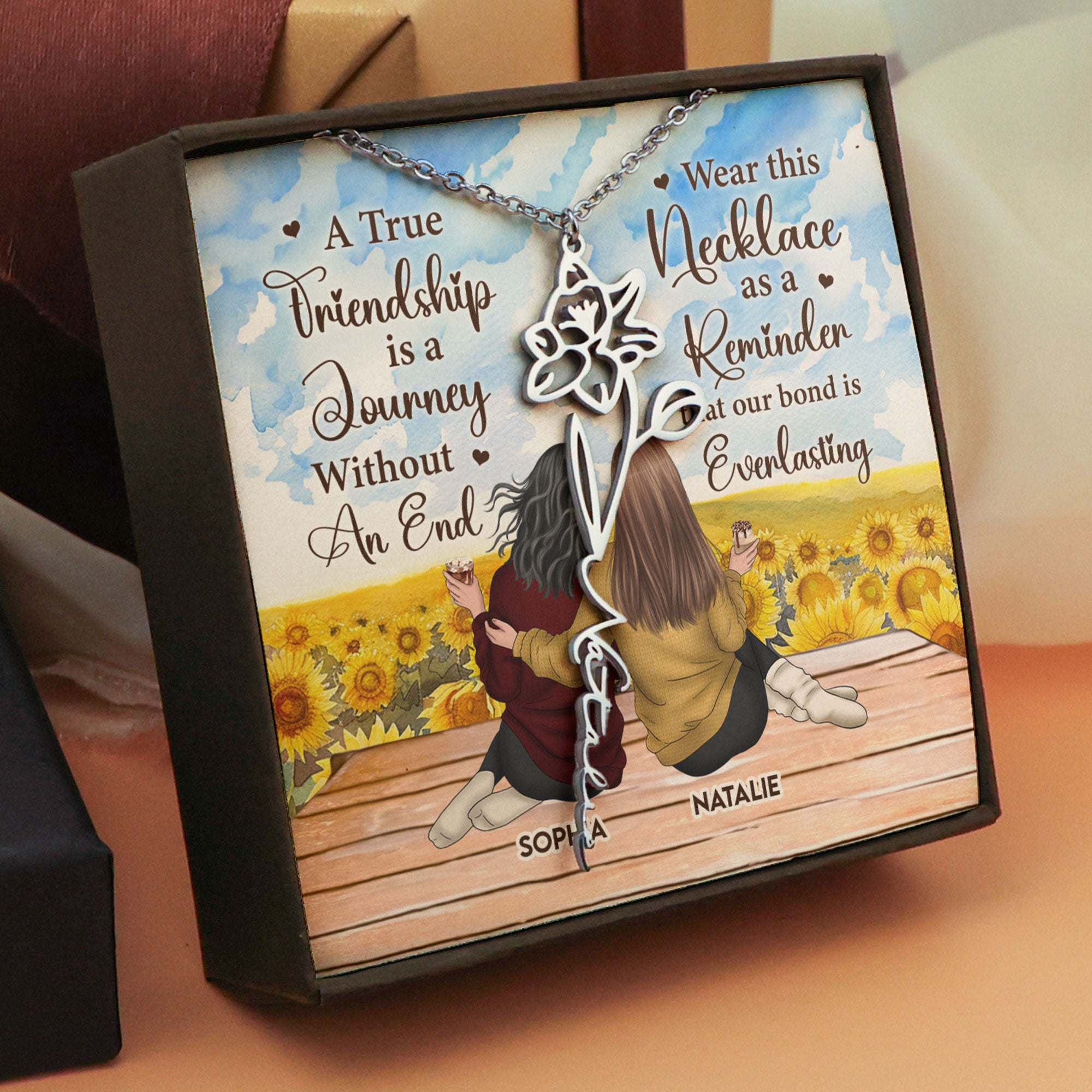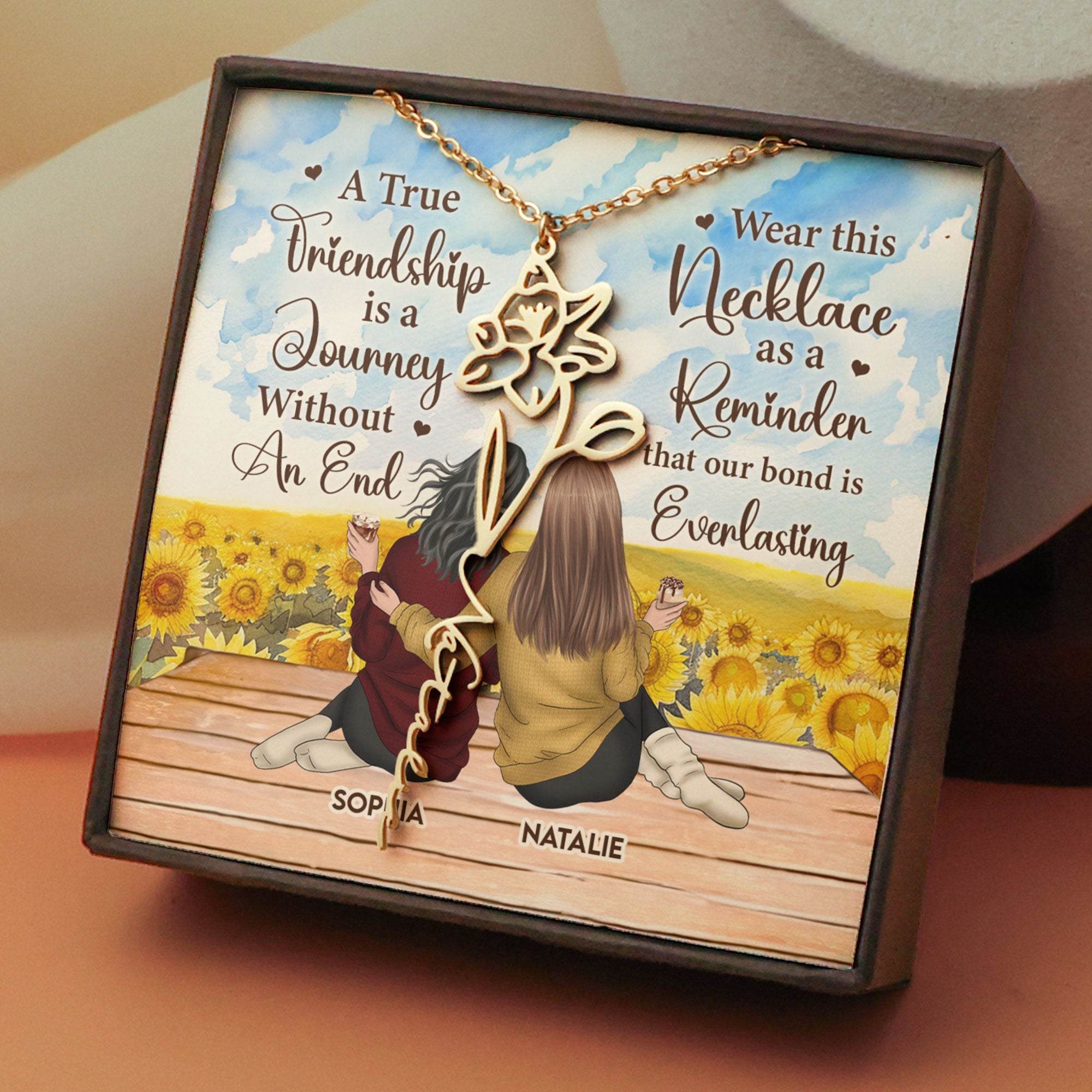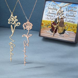 This custom necklace is an ideal keepsake that will be cherished for years to come, symbolizing the bond that blossoms between friends and siblings. Celebrate your connection in style with this personalized and unforgettable piece!