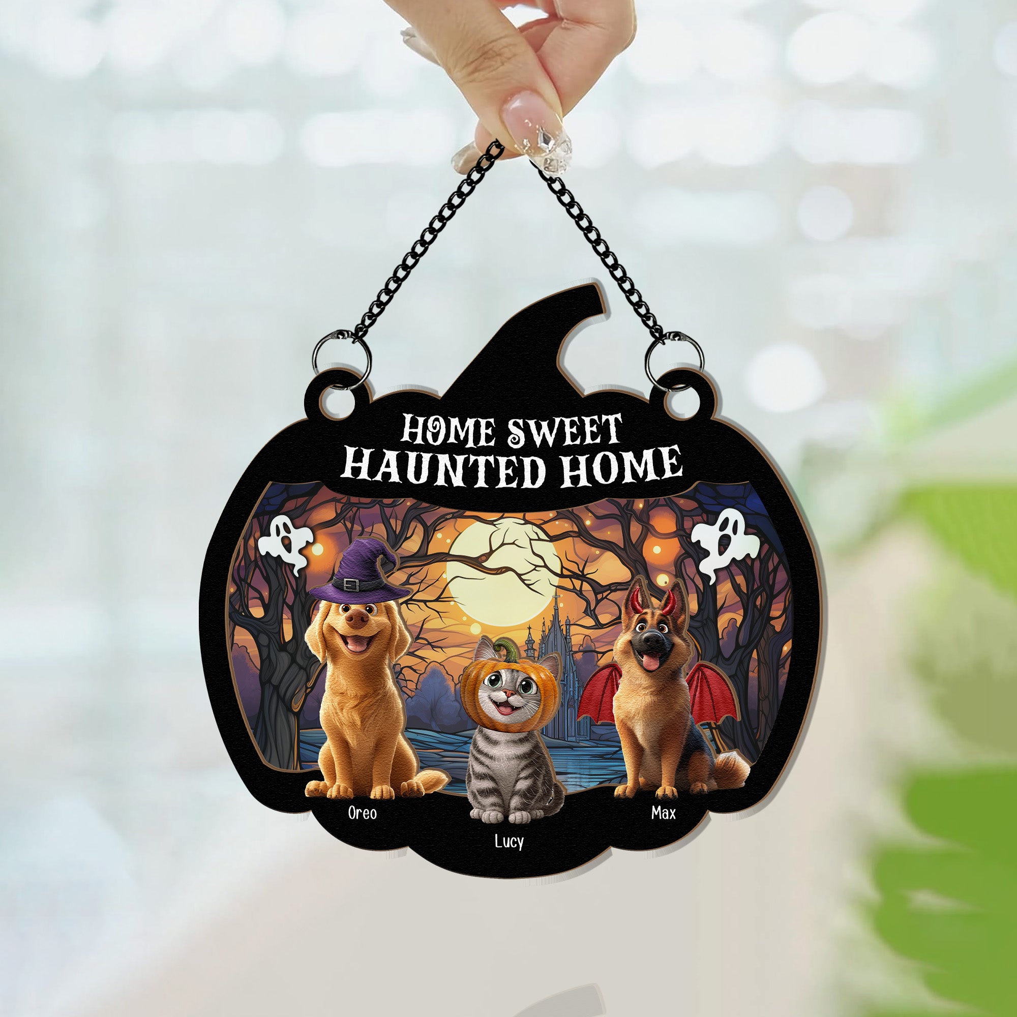 - The front of this suncatcher is made from premium natural wood and mounted on acrylic plexiglass.