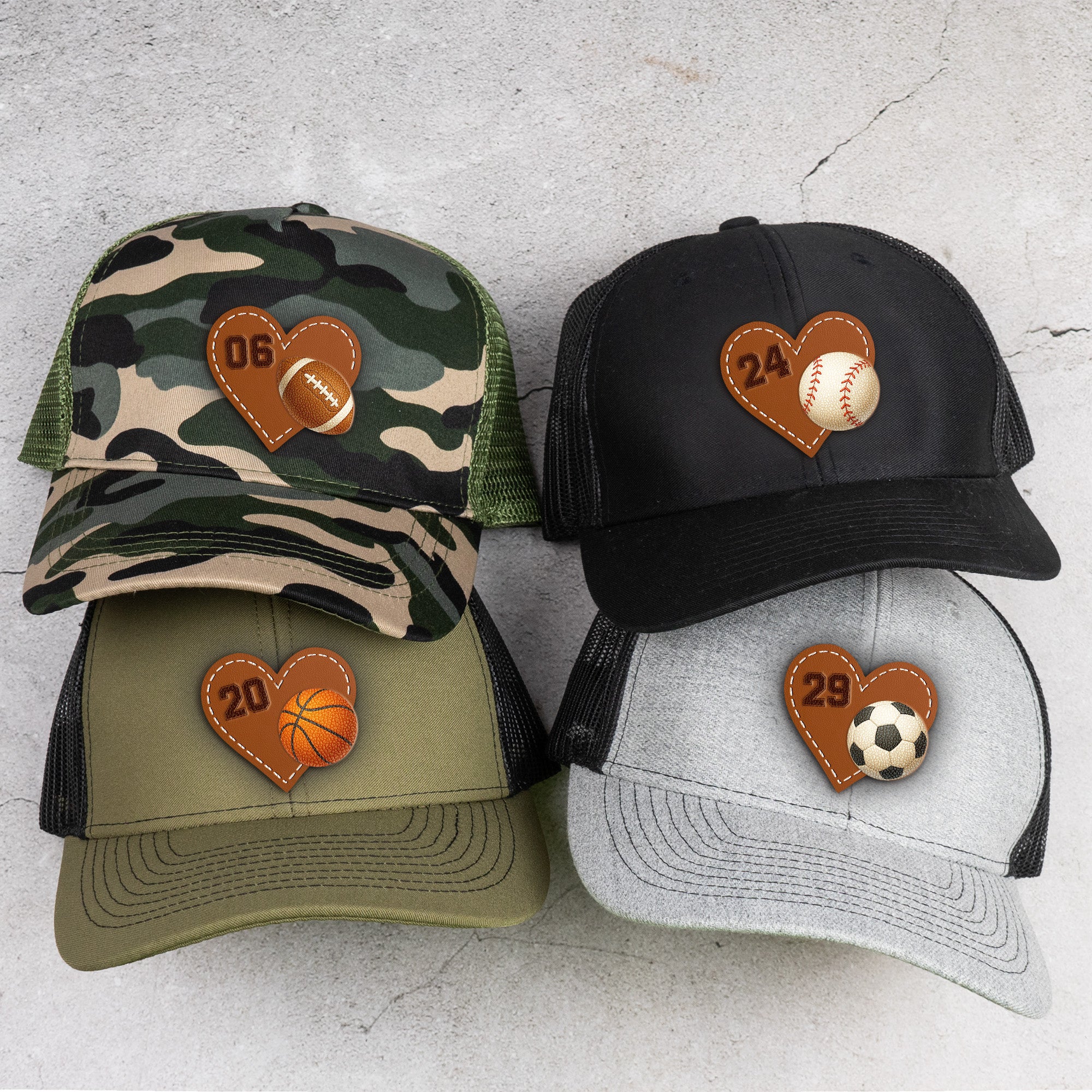 Celebrate your love for sports with our custom shaped leather patch hat, personalized with passion for football, baseball, softball and other sports. Perfect for sports enthusiasts, our hats create a unique bond amongst players, team members, coaches and fans alike. This quality crafted accessory is perfect for birthdays, anniversaries, sporting events or any occasion that celebrates the sporting spirit.