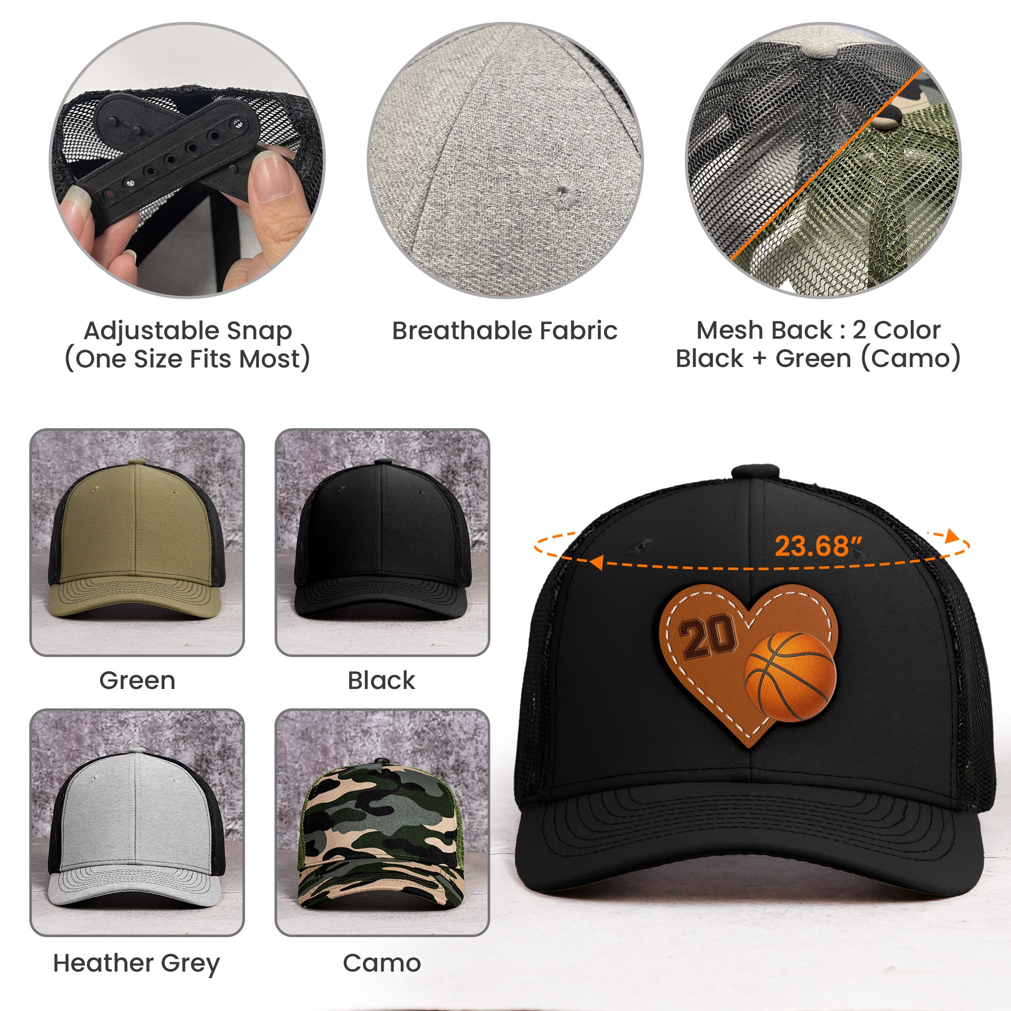 - Material: Made from a high-quality blend of 60% Cotton and 40% Polyester, offering a durable and comfortable wear. The breathable mesh backing provides excellent airflow, while the soft cotton sweatband keeps you cool and dry even on the hottest days.