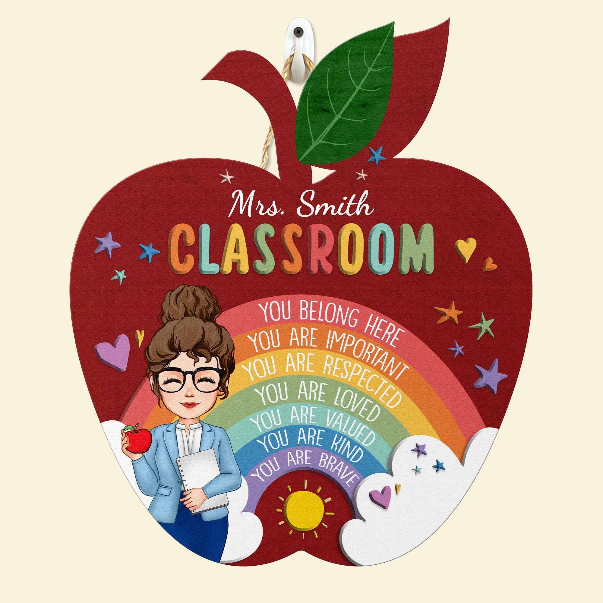 This wooden sign can be painted with the teacher’s name. The teacher can hang it up in their classroom or their home.
