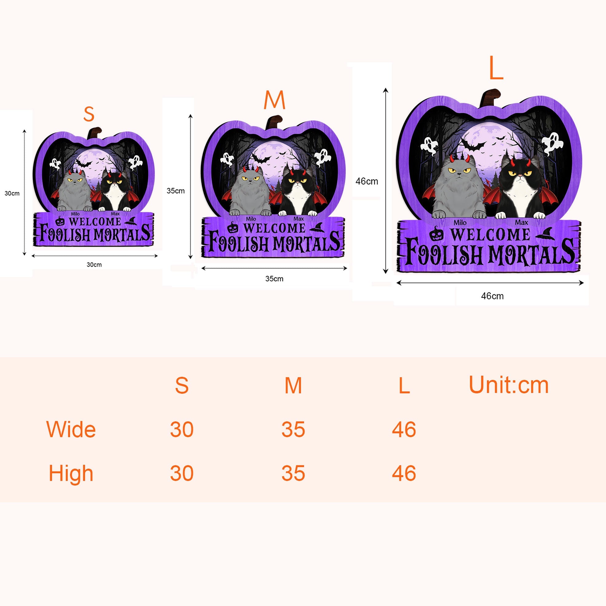 Welcome guests to your perfect home with our Welcome Foolish Mortals wood sign which are special versions for Halloween! Ideal for any cat mom, cat dad, or feline fanatic. These whimsical mats allow you to proudly display your love for all things cats right at your doorstep.