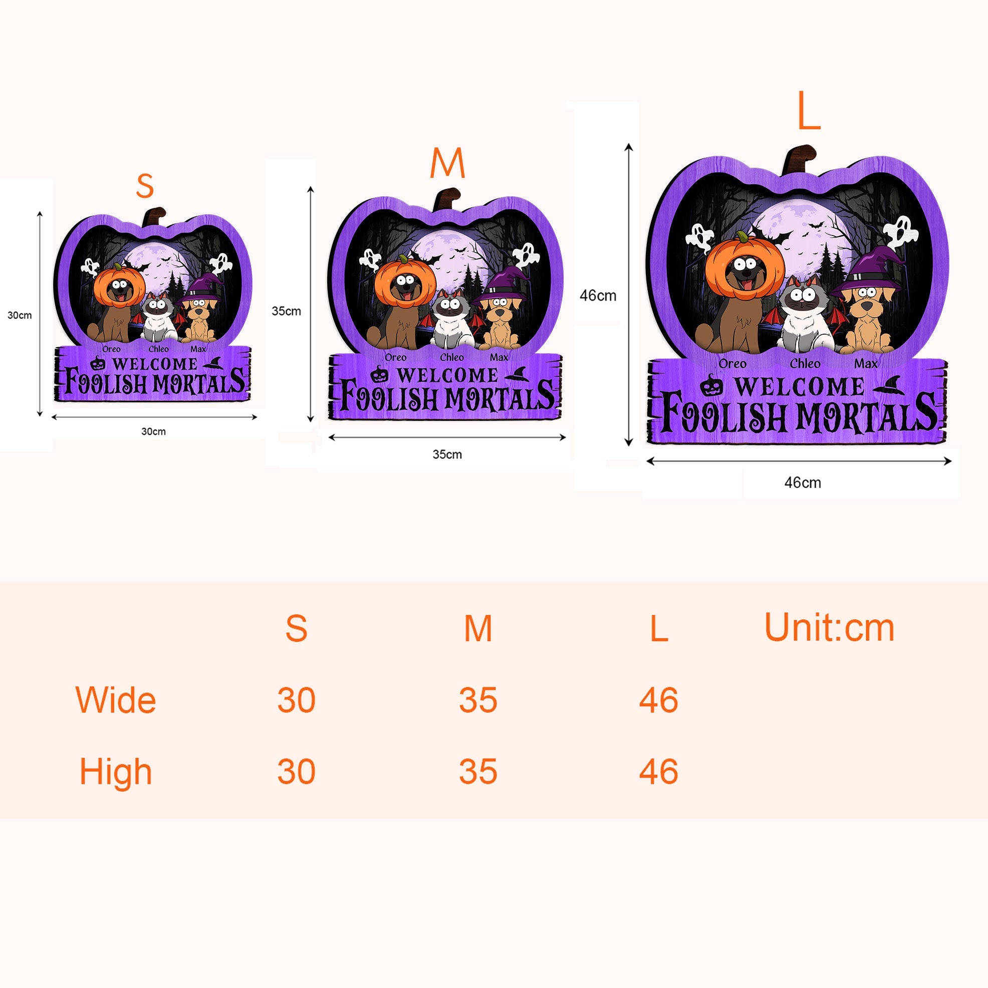 Welcome guests to your perfect home with our Welcome Foolish Mortals wood sign which is a special version for Halloween! Ideal for any cat & dog mom, pet dad, or furry fanatic. This whimsical sign allows you to proudly display your love for all things dog and cat right at your door.