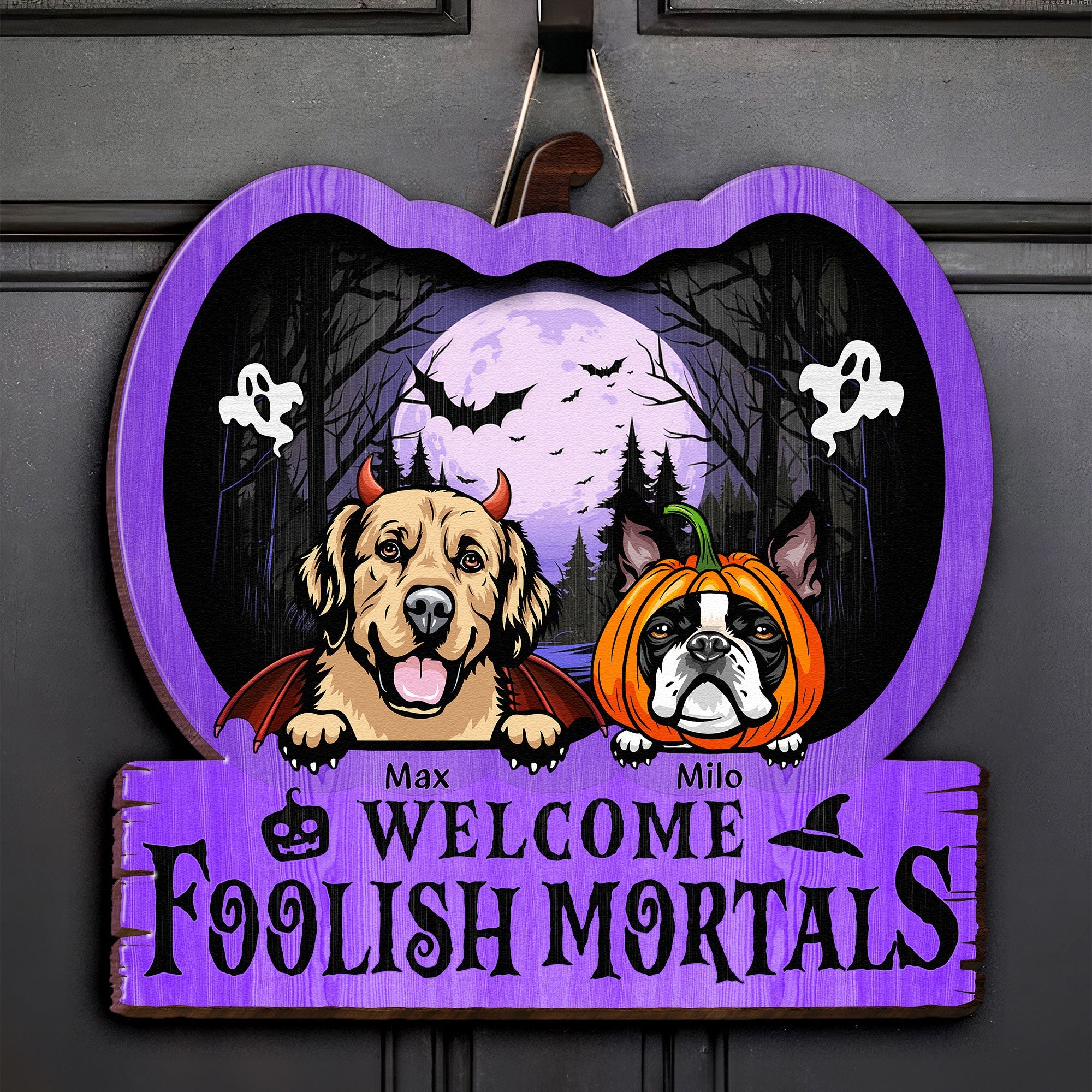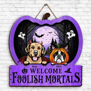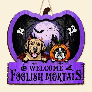 Welcome guests to your perfect home with our Welcome Foolish Mortals wood sign which is a special version for Halloween! Ideal for any dog mom, dog dad, or furry fanatic. This whimsical sign allows you to proudly display your love for all things dogs right at your door.