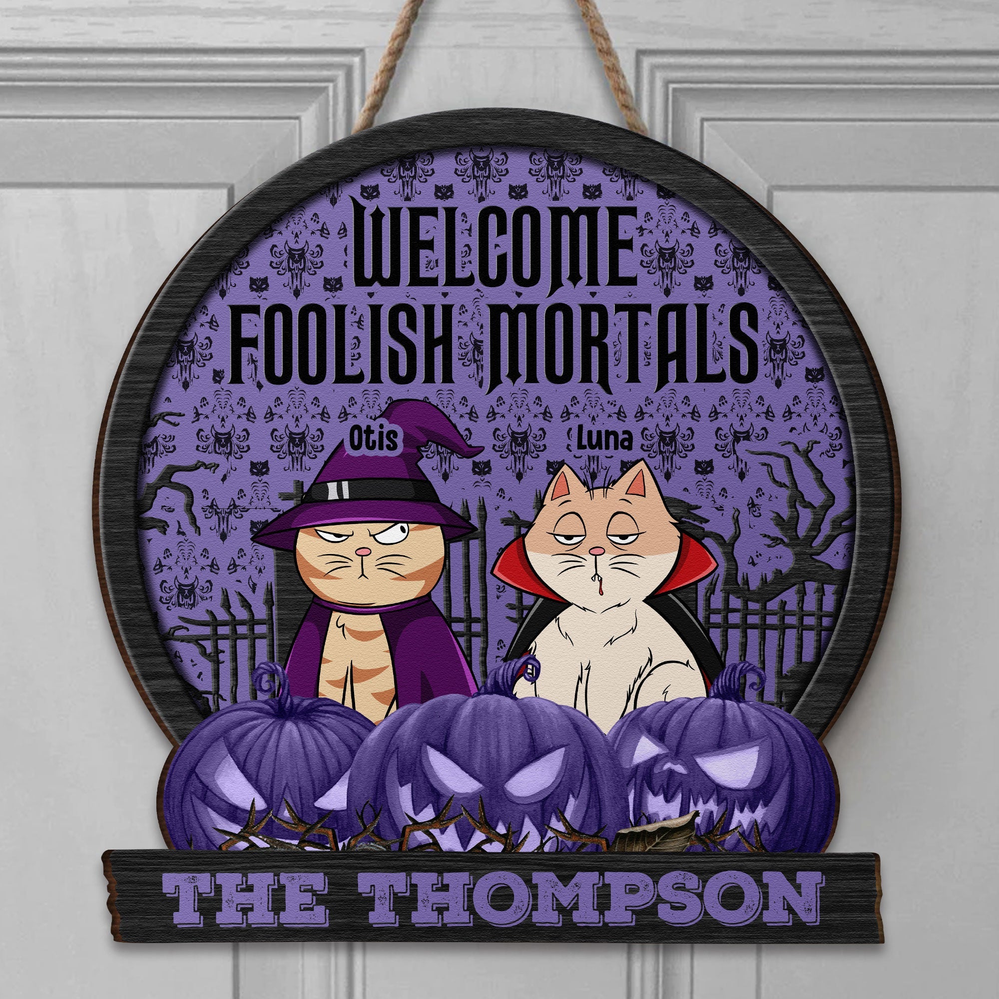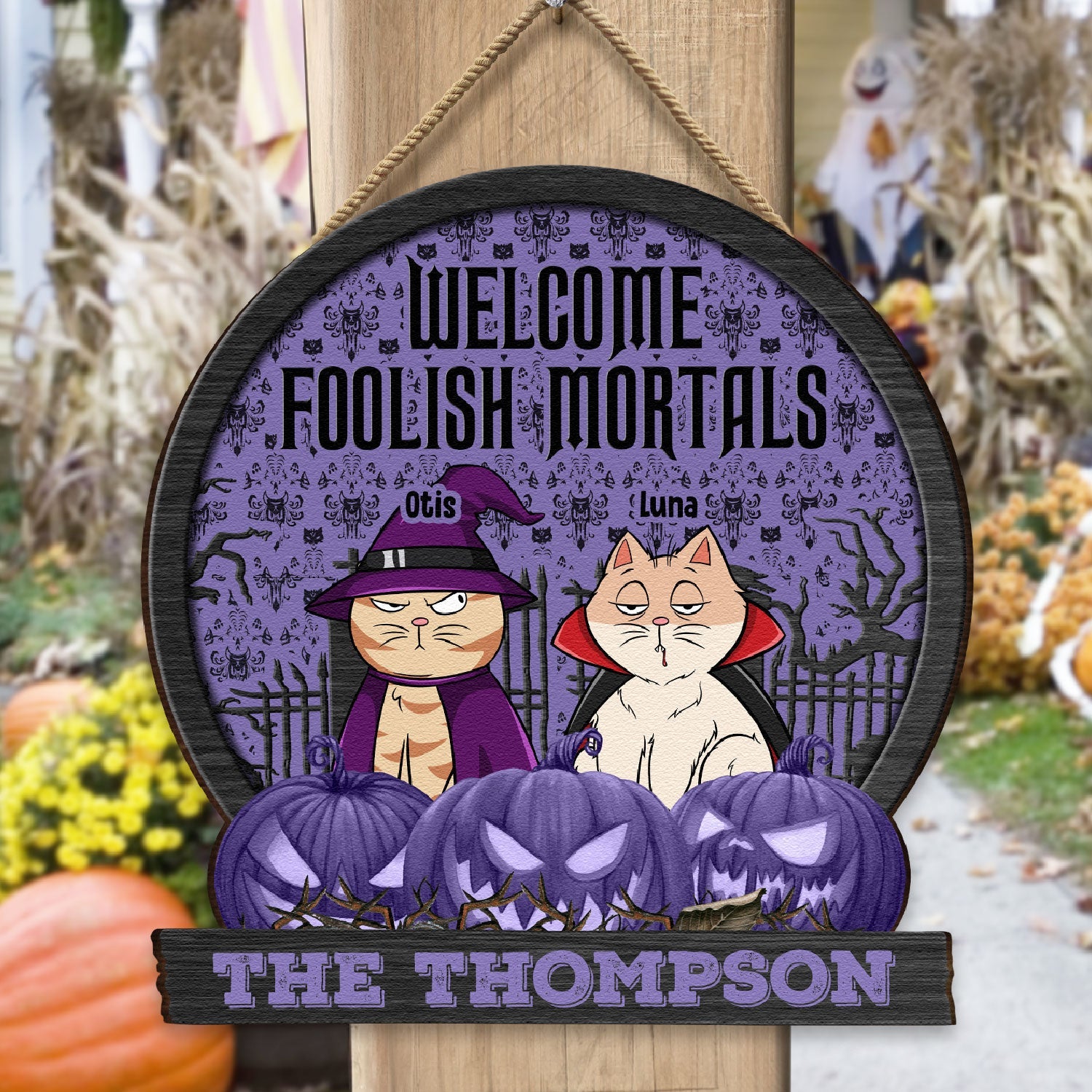 Welcome guests to your perfect home with our Welcome Foolish Mortals wood sign which are special versions for Halloween! Ideal for any cat mom, cat dad, or feline fanatic. These whimsical mats allow you to proudly display your love for all things cats right at your doorstep.