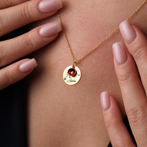 + Birthstone: 0.3 inches ( ~ 0.8 cm). - Featuring a sleek round charm customised with your choice of birthstone, it’s the perfect statement piece.
